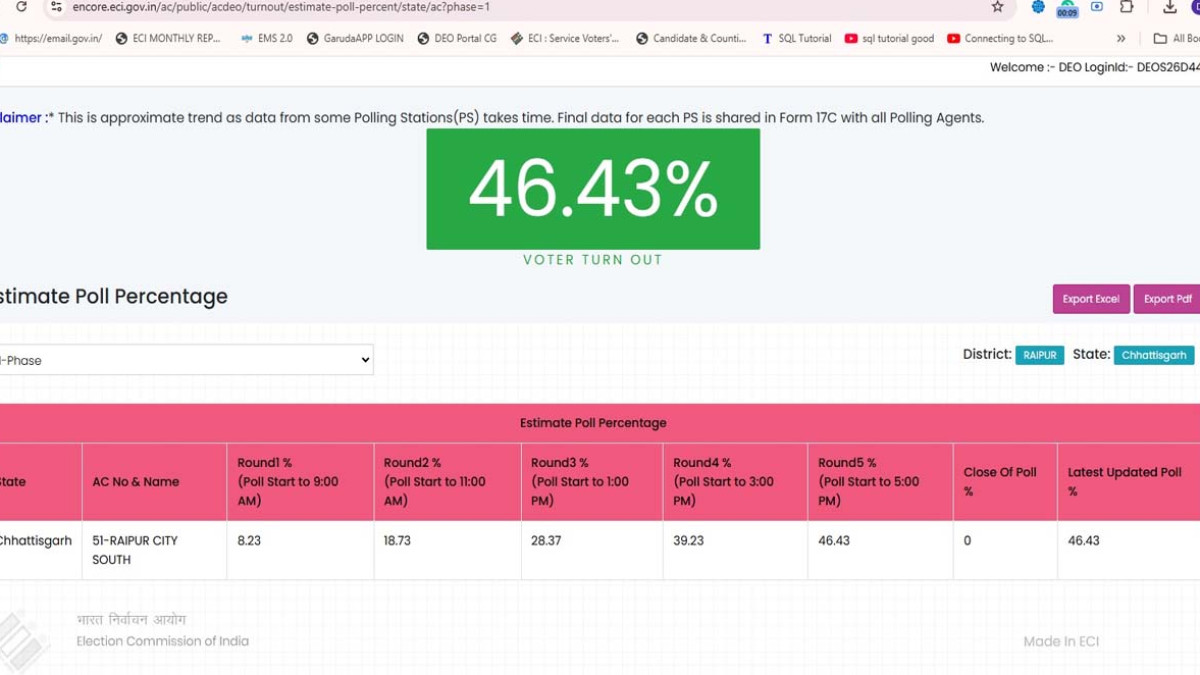 रायपुर। रायपुर नगर दक्षिण विधानसभा उपनिर्वाचन में मतदान प्रतिशत की जानकारी वोटर टर्न आउट मोबाइल एप का उपयोग कर देख सकते हैं।