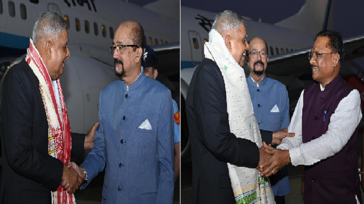 उपराष्ट्रपति जगदीप धनखड़ अपनी धर्मपत्नी डॉ. सुदेश धनखड़ के साथ बुधवार की शाम स्वामी विवेकानंद एयरपोर्ट रायपुर पहुंचे। जहां एयरपोर्ट पर राज्यपाल रमेन डेका, सीएम विष्णुदेव साय ने उनका स्वागत किया।