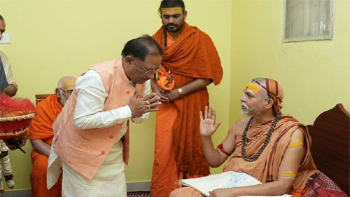मुख्यमंत्री विष्णुदेव साय शंकराचार्य आश्रम पहुंचे। जगद्गुरु शंकराचार्य स्वामी अविमुक्तेश्वरानंद महाराज का आशीर्वाद लिया। उनके आध्यात्मिक प्रवचन से संत समागम का शुभारंभ हुआ।