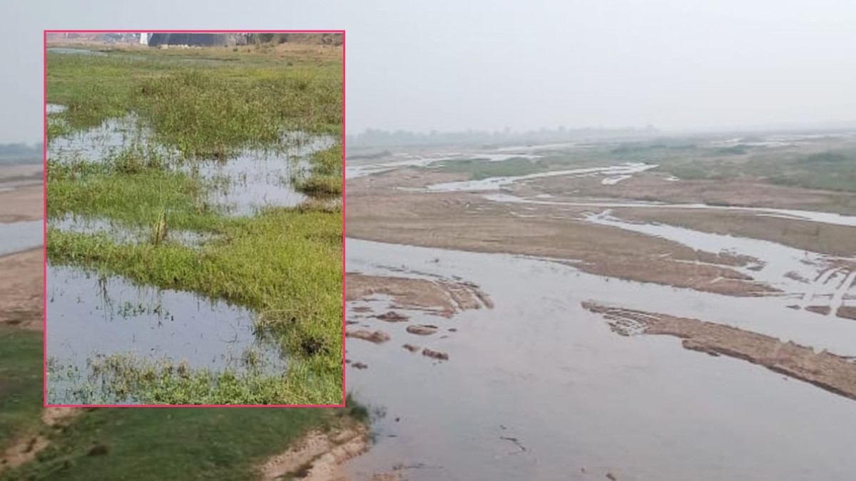 राजिम का त्रिवेणी संगम प्रदूषण की चपेट में : उग आई हैं कटीली झाड़ियां, दूर-दूर तक सफेद रेत की जगह हरी काइयों ने ले ली