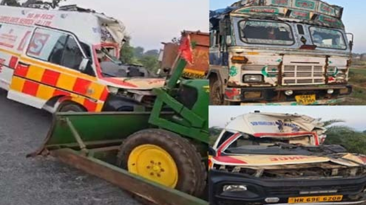 एम्बुलेंस खड़े ट्रक से टकराई : दो मेडिकल स्टाफ की मौके पर मौत, 6 लोग गंभीर रूप से घायल