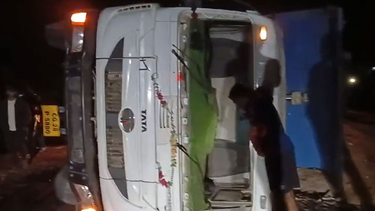 अनियंत्रित होकर पलटी ट्रैक्टर-ट्रॉली