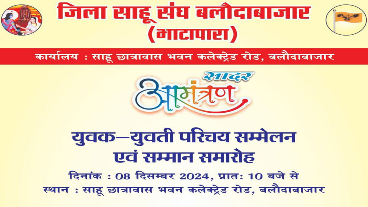 साहू समाज युवक- युवती परिचय सम्मलेन : 8 दिसंबर को होगा आयोजन, डिप्टी सीएम साव होंगे शामिल
