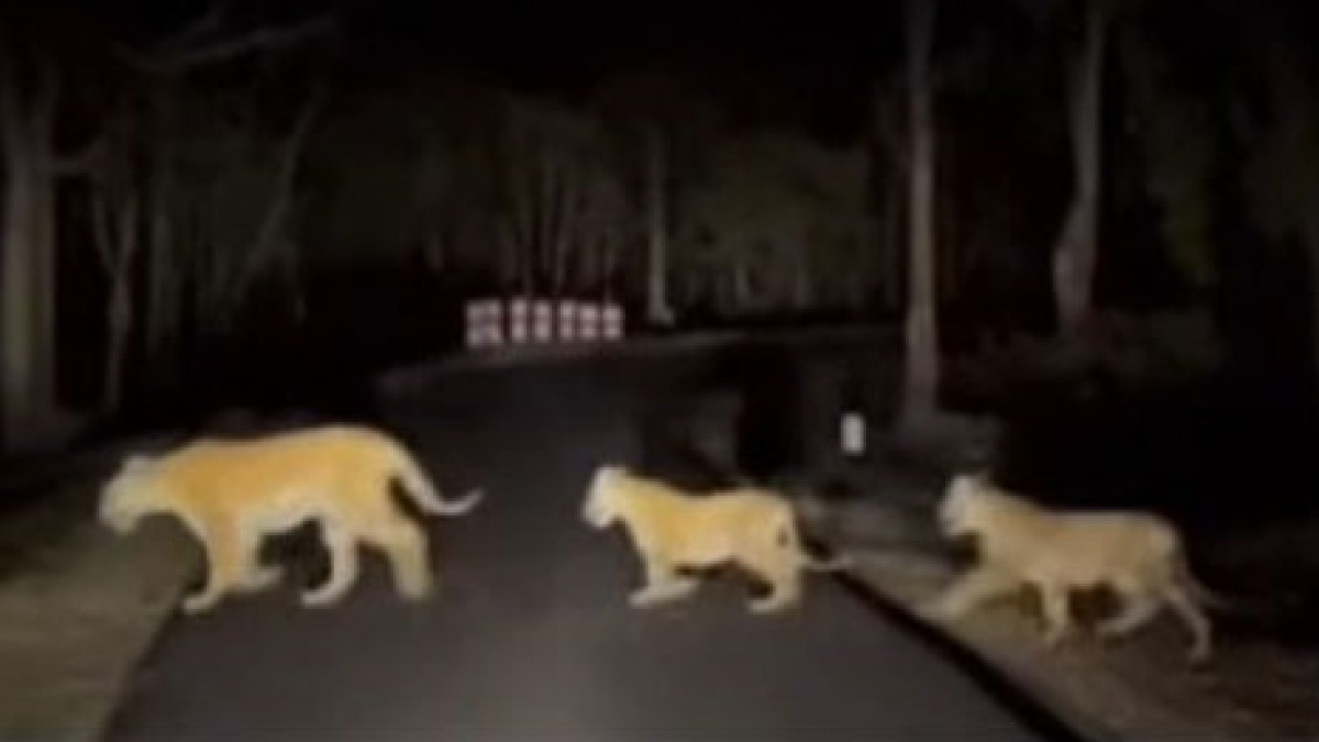 सरपंच का शेरों से साक्षात : रात 9.30 बजे सड़क पार करता दिखा शेरनी के साथ 3 शावकों का परिवार