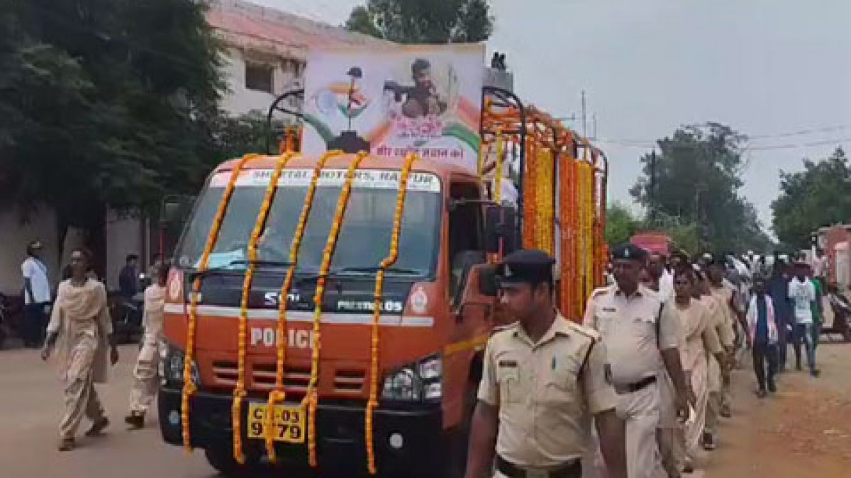 जितेंद्र सोनी-जशपुर। नक्सली मुठभेड़ में शहीद जवान नितेश एक्का का पार्थिव शरीर उनके गांव चराई डांड ले जाया गया। उनके पार्थिव शरीर को लेने पूरा गांव आगडीह एयरपोर्ट पहुंचा। शहीद जवान का जुलूस निकाल कर जशपुर में घुमाया जा रहा है। पूरा प्रशासनिक और पुलिस अमला इस जुलूस में शामिल है। लोग जवान की शहादत को नमन करने पहुंचे हैं।