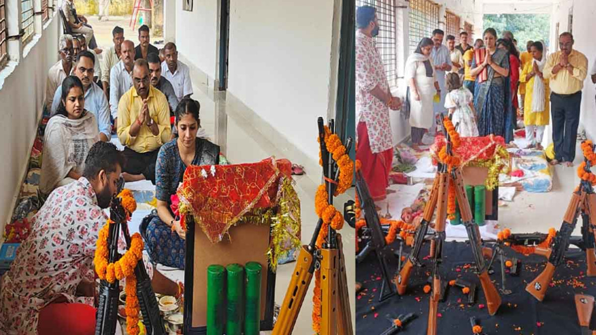 एसपी ने की शस्त्र पूजा : महिला अफसर ने दनादन किए हर्ष फायर, सुख- समृद्धि की कामना के साथ दी विजयदशमी की शुभकामनाएं