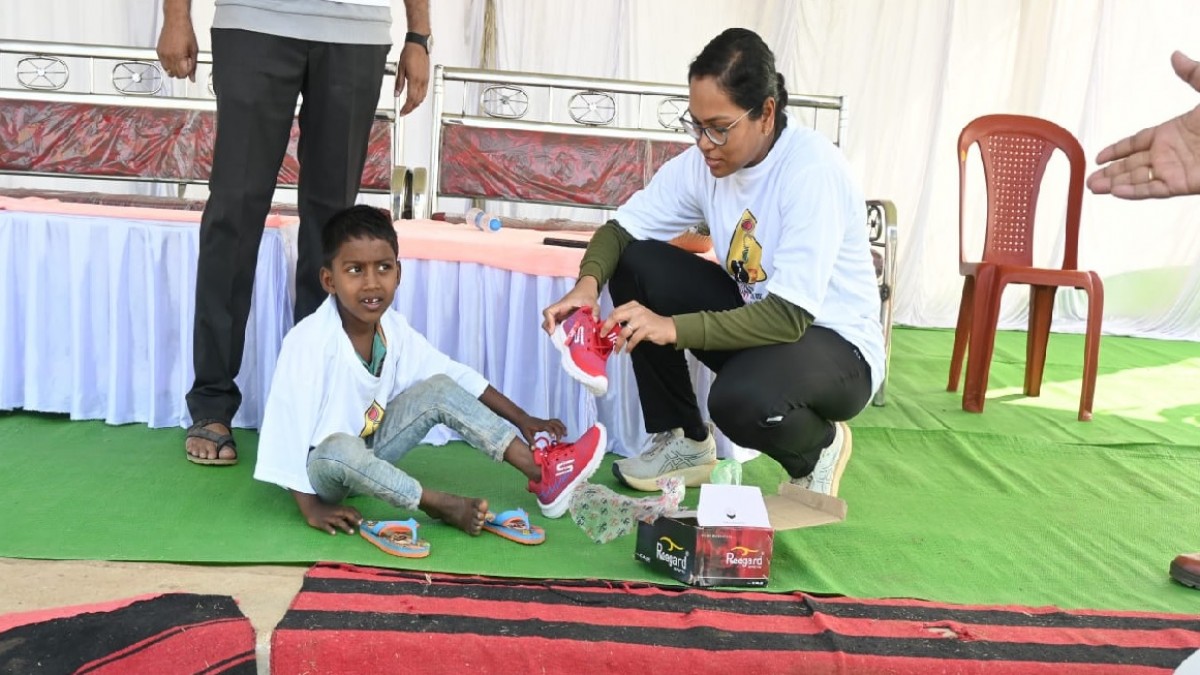 बालक के लिए पसीजा एसपी का दिल : 'वॉक एंड रन' में साथ पैदल चल रहे बच्चे को दिलाए जूते और चप्पल
