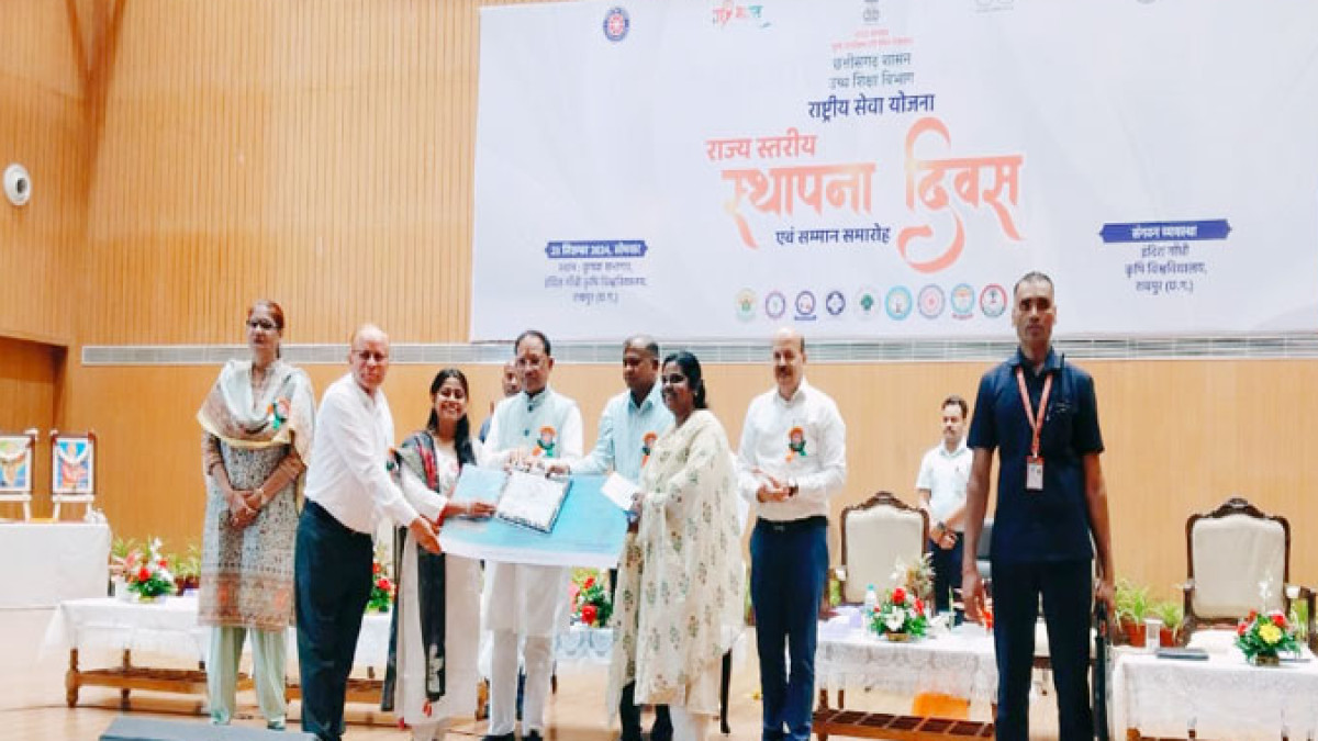 दरअसल इंदिरा गांधी कृषि विवि में राष्ट्रीय सेवा योजना ( NSS ) ने राज्य स्तरीय स्थापना दिवस और सम्मान समारोह का आयोजन किया गया था। कार्यक्रम में सीएम विष्णु देव साय ने खुशबू सोनखरे को राज्य स्तरीय पुरस्कार से सम्मानित किया। मुख्यमंत्री ने इस अवसर पर सेवा कार्याें में उत्कृष्ट योगदान देने वाले युवा स्वयंसेवियों, कार्यक्रम अधिकारियों और संस्थाओं को सम्मानित किया। एनएसएस की पत्रिका समर्पण का विमोचन किया।