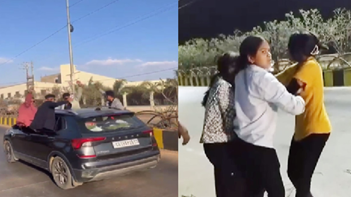 छात्रों का खतरनाक स्टंट : चलती कार की खिड़की से बाहर निकलकर दिखाया टशन, बीच सड़क पर भिड़ी लड़कियां