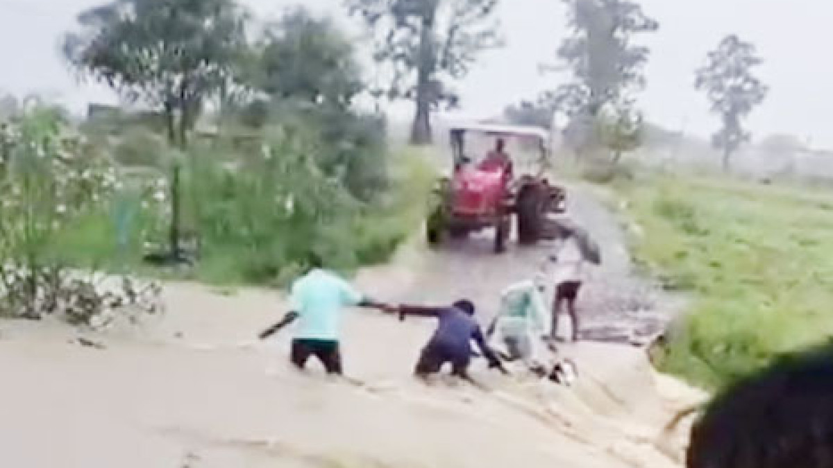 धरसेड़ी गांव में पुल के ऊपर बह रहे पानी में बाइक पार करते समय युवक बहने लगा। वहां मौजूद लोगों ने कड़ी मशक्कत के बाद युवक की जान बचाई।