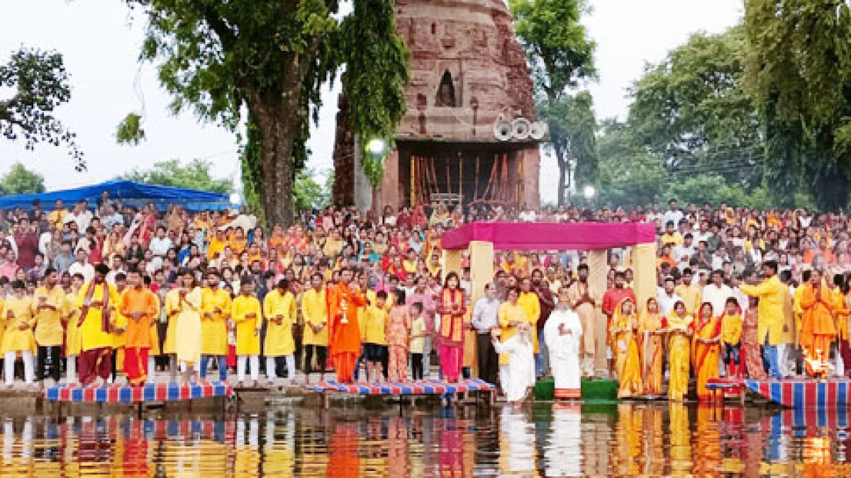 मंदिर परिसर और घाट को सजाया गया है। हजारों की संख्या में श्रद्धालु पहुंचे। पहले भगवान भोलेनाथ का जलाभिषेक किया गया। इसके बाद पंडितों और पुजारियों के मंत्रोच्चार के साथ महाआरती की गई। इस दौरान काशी के गंगा आरती जैसा ही भव्य और मनमोहक नजारा रहा।