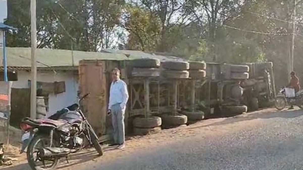 दो घरों में घुसा कोयला लदा ट्रेलर : नशे में चूर चालक के नियंत्रण से बाहर हुए ट्रेलर के पलटने से कोयला घरों में गिरा