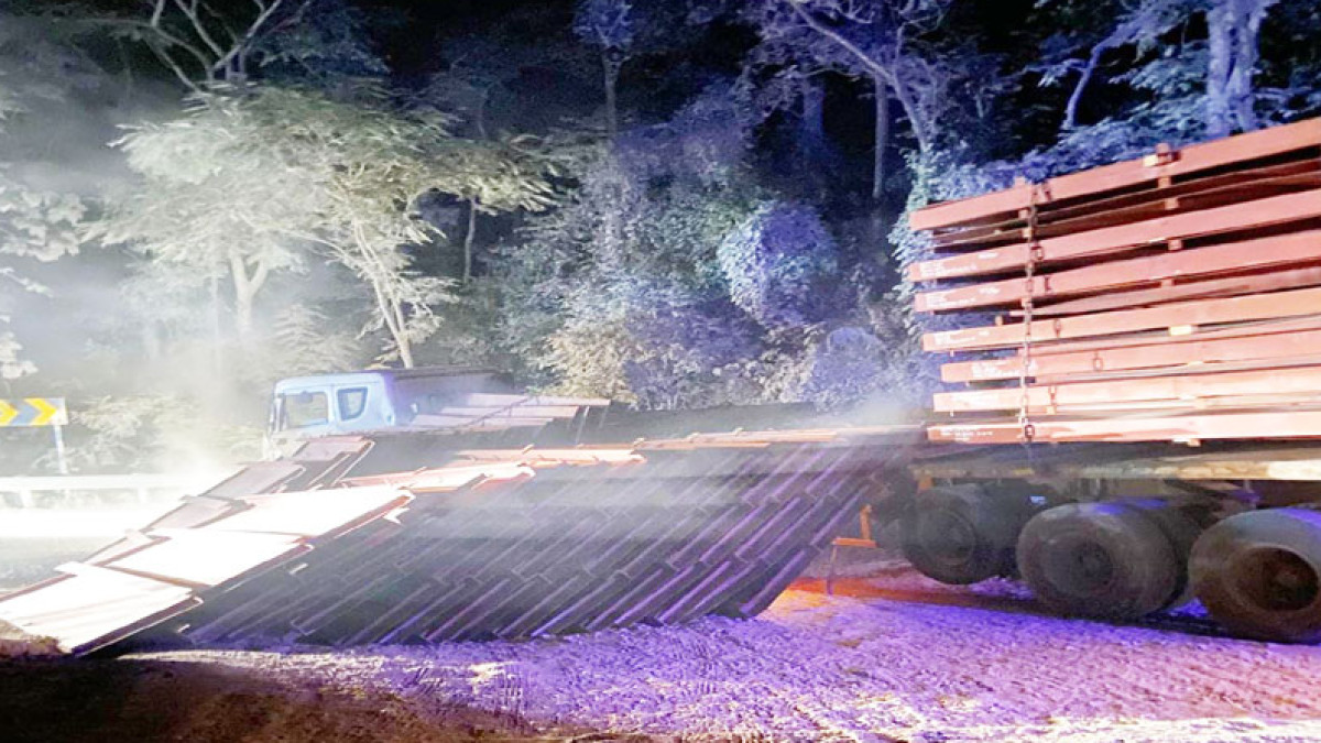 कुलजोत संधू - फरसगांव। छत्तीसगढ़ के कोंड़ागांव जिले के केशकाल घाटी में बीती रात ट्रेलर ट्रक पलट गया। जिसके बाद नेशनल हाइवे 30 में वाहनों की आवाजाही बंद कर दी गई थी। जिसके कारण वाहनों की लम्बी कतार लग गई थी। सूचना मिलने के बाद मौके पर पहुंचकर पुलिस ने बाधित आवाजाही को चालू कर दिया गया। ट्रेलर रायगढ़ से जगदलपुर की ओर फेब्रिकेशन समान लेकर जा रहा था। सड़कों की ख़राब हालत के चलते भारी वाहनों के पलटने का सिलसिला निरंतर जारी है।