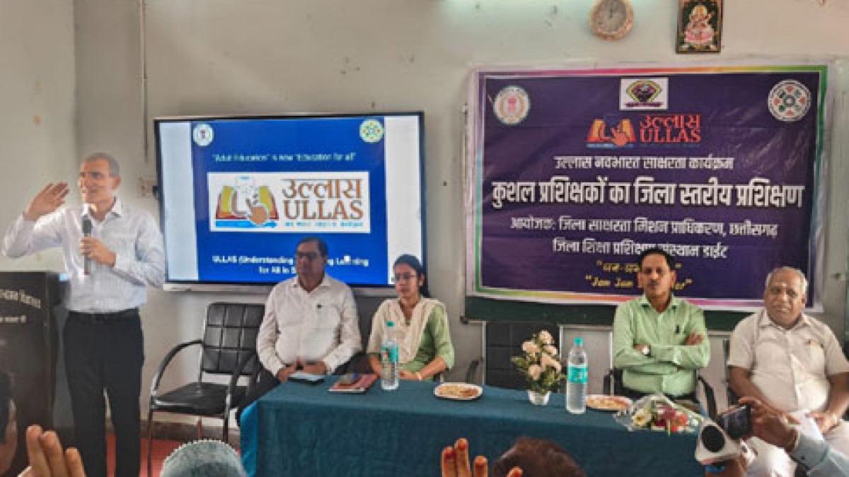 दरअसल उल्लास नवभारत साक्षरता कार्यक्रम के त्वरित क्रियान्वयन के लिए जिले के कुशल ट्रेनर्स का जिला स्तरीय ट्रेनिंग का कार्यक्रम स्वामी आत्मानंद उत्कृष्ट हिंदी माध्यम विद्यालय बेमेतरा में प्रारंभ हुआ। ट्रेनिंग के पहले दिन जिले के कलेक्टर रणबीर शर्मा ने सभी प्रतिभागी ट्रेनर्स को संबोधित करते हुए कहा कि, साक्षरता शिक्षा का पहला पग है, इससे हमें अक्षर ज्ञान हो जाता है। इस साक्षरता कार्यक्रम से जुड़े हुए सभी शिक्षकों, ट्रेनर्स और मास्टर ट्रेनरों से अनुरोध है की इसे प्राथमिकता के तौर पर लेते हुए तन और मन से जुड़कर उत्साहपूर्वक कार्य करें।