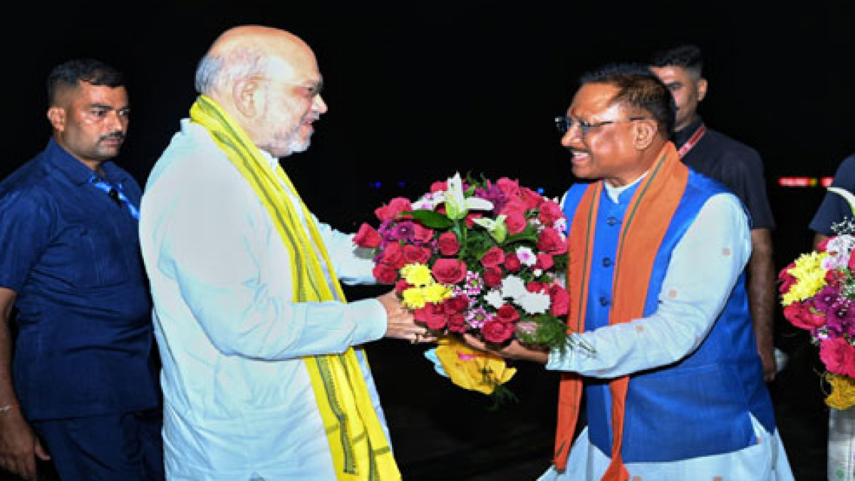 रायपुर। केंद्रीय गृहमंत्री अमित शाह छत्तीसगढ़ के तीन दिवसीय प्रवास पर राजधानी रायपुर पहुंचे। मुख्यमंत्री विष्णु देव साय ने स्वामी विवेकानंद विमानतल पर केंद्रीय गृह मंत्री अमित शाह का आत्मीय स्वागत किया। इस अवसर पर उप मुख्यमंत्री अरूण साव और विजय शर्मा, केंद्रीय आवास एवम शहरी विकास राज्य मंत्री तोखन साहू सहित छत्तीसगढ़ मंत्री परिषद के सदस्यगण, मुख्य सचिव अमिताभ जैन, पुलिस महानिदेशकृ अशोक जुनेजा और वरिष्ठ अधिकारी मौजूद रहे।