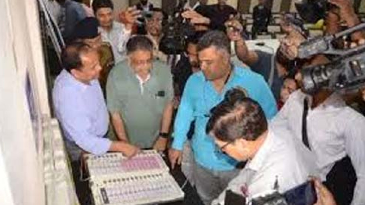 ईवीएम मशीनों की प्रदर्शनी में प्रत्याशी प्रतिनिधियों ने डाले वोट