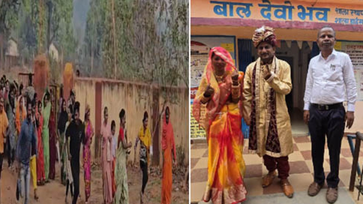नारायणपुर- बस्तर सीट पर पहले चरण के मतदान के बीच नारायणपुर में जिम्मेदारी को निभाते हुए एक नवविवाहित शादीशुदा जोड़े ने अपने पूरे परिवार के साथ मिलकर वोट दिया है। नारायणपुर विधानसभा क्षेत्र के मतदान केंद्र क्रमांक-42 गुरिया के दुल्हा देवेश ठाकुर और दुल्हन गंगोत्री ठाकुर ने शादी के तुरंत बाद अपने मताधिकार का प्रयोग किया है। वहीं दूसरी ओर छोटेडोंगर में मतदान करने के लिए सुबह से इंतजार कर रहे लोगों ने दौड़ लगा दी।