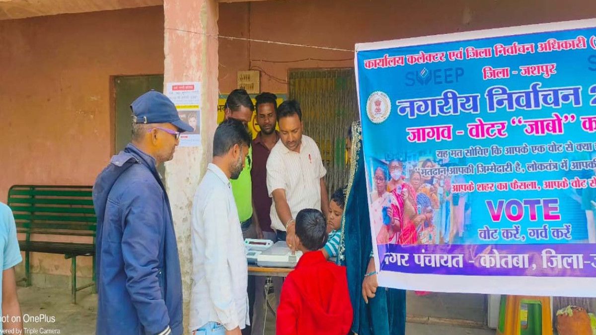 जशपुर जिले के नगर पंचायत कोतबा में 'जागव'-वोटर जाबो कार्यक्रम के द्वारा लोगों को जागरूक किया जा रहा है।