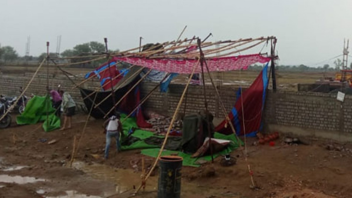 आंधी-तूफान के दौरान धरनास्थल में प्रदर्शनकारियों के ऊपर दीवार भरभराकर गिर गई। गई। हादसे में 5 ग्रामीण घायल हो गए।