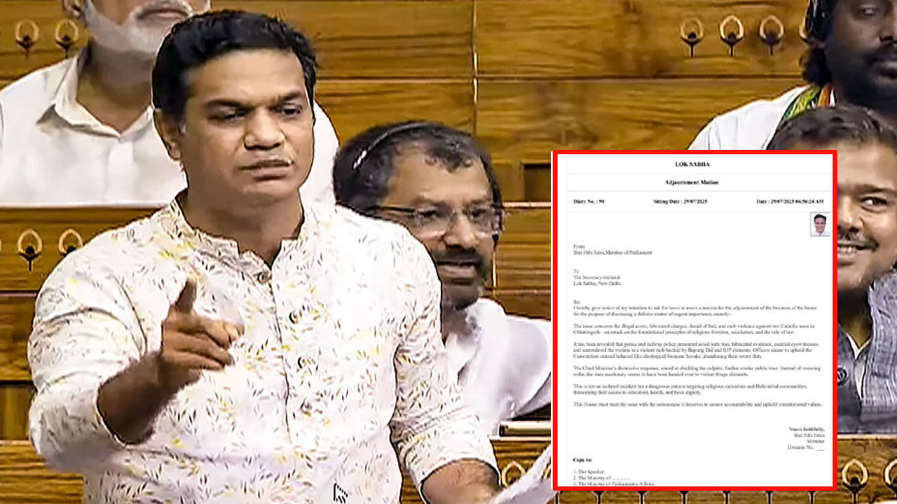 नन गिरफ़्तारी का मामला संसद तक पहुंचा: कांग्रेस सांसद हिबी ईडन ने लोकसभा में दिया स्थगन प्रस्ताव, चर्चा की मांग