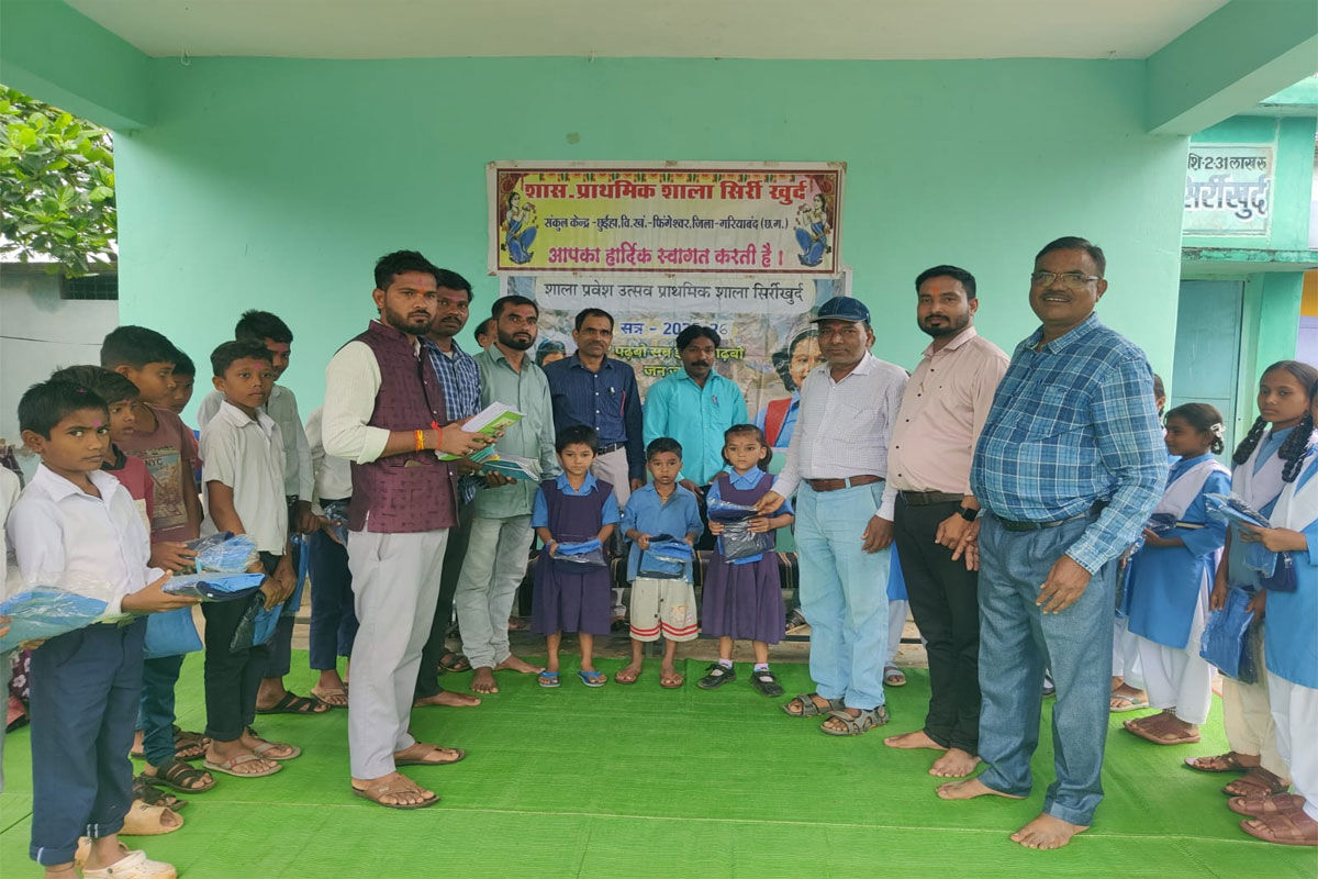 दरअसल, गरियाबंद जिले के प्राथमिक और प्राथमिक शाला सिर्रीखुर्द में शाला प्रवेशोत्सव का आयोजन किया गया। कार्यक्रम में सरपंच देवेंद्र वर्मा मुख्य अतिथि के रूप में शामिल हुए। इस दौरान उन्होंने नवप्रवेशी बच्चों का फूलों की माला पहनाकर और मीठा कर स्वागत किया। साथ ही सभी नवप्रवेशी बच्चों को पेन- कापी भेंट कर न्योता भोज कराया।