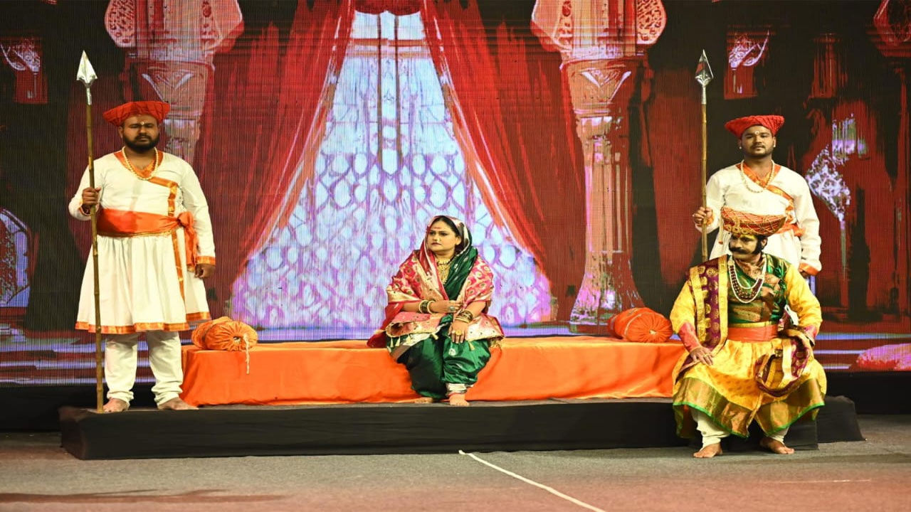 महारानी अहिल्याबाई होलकर की जीवनी पर आधारित नाट्य मंचन करते हुए कलाकार