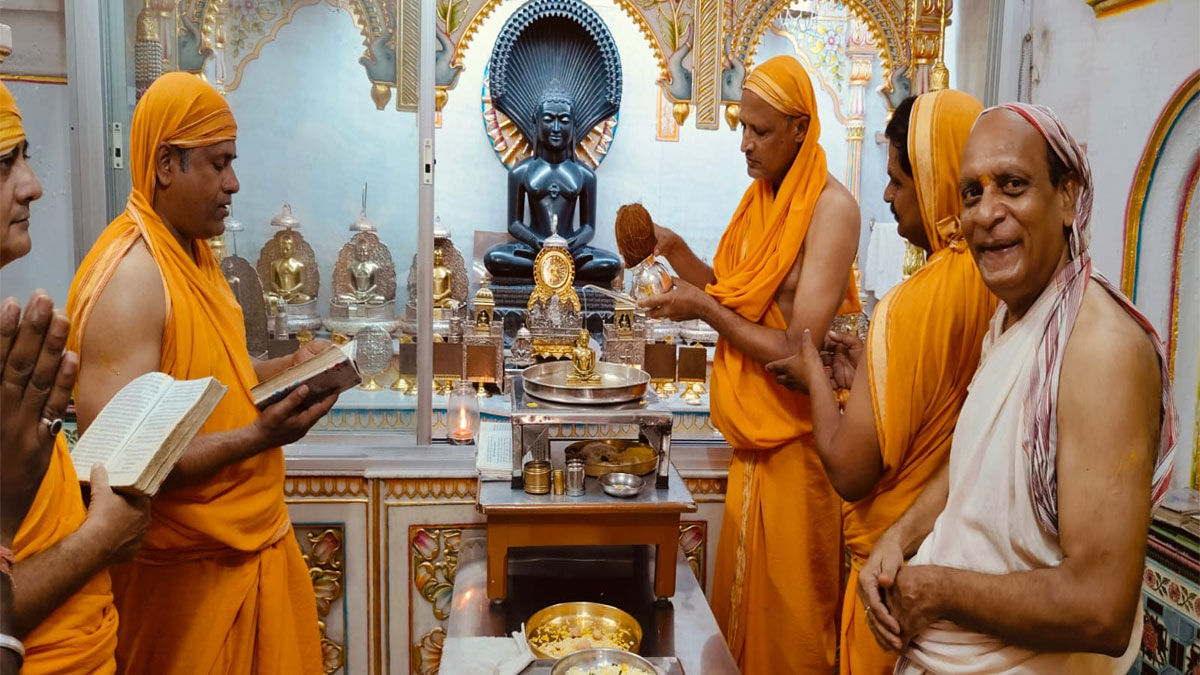 इस अवसर पर सुबह 8.30 बजे बड़ा मंदिर की श्री पार्श्वनाथ बेदी के समक्ष श्री शांतिनाथ भगवान को पाण्डुक शिला में विराजमान कर, प्रासुक जल मंत्रोंचार से शुद्ध कर रजत कलशों से जल अभिषेक किया गया। इसके बाद विश्व शांति की मनोकामना कर चमत्कारिक शांतिधारा की गई।