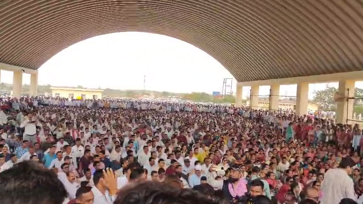 युक्तियुक्तकरण के विरोध में शिक्षकों का बड़ा प्रदर्शन