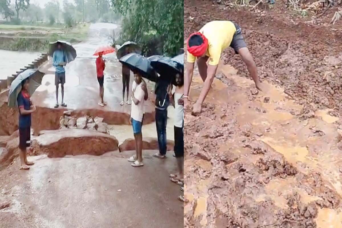 लगतार बारिश से बालोद जिले का सेमरिया नाला पुल बह गया। कवर्धा के सिवनीकला गांव में कीचड़ भरी सड़क से परेशान ग्रामीण खुद मिट्टी हटाने लगे।
