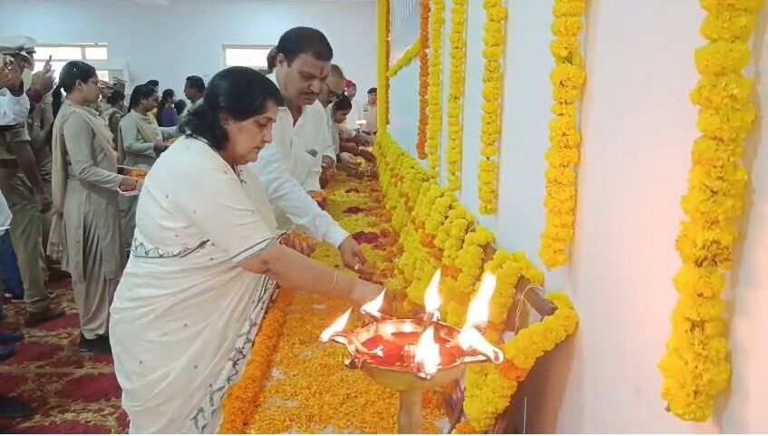 शहीद एसपी वीके चौबे की पत्नी ने दी श्रद्धांजलि