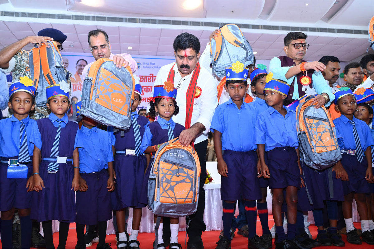 स्कूली बच्चों को बैग वितरित करते हुए डिप्टी सीएम विजय शर्मा