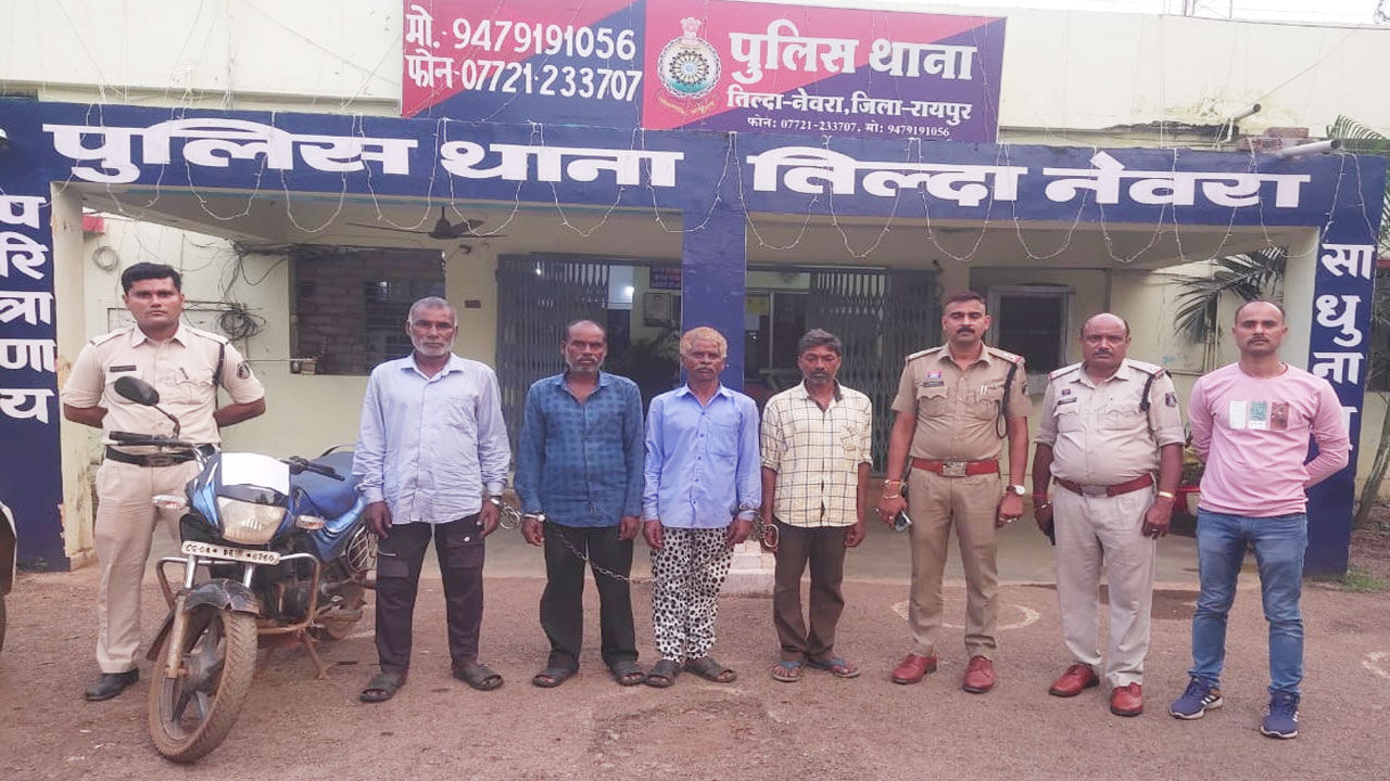 तिल्दा- नेवरा में गैर इरादतन हत्या के मामले में चार आरोपियों को गिरफ्तार कर जेल भेज दिया गया है। चारों के द्वारा लगाये गए करंट से एक व्यक्ति की मौत हो गई।
