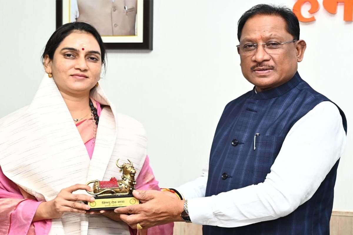 मुख्यमंत्री विष्णु देव साय से "वॉटर वुमन" के नाम से विख्यात शिप्रा पाठक ने सौजन्य भेंट की
