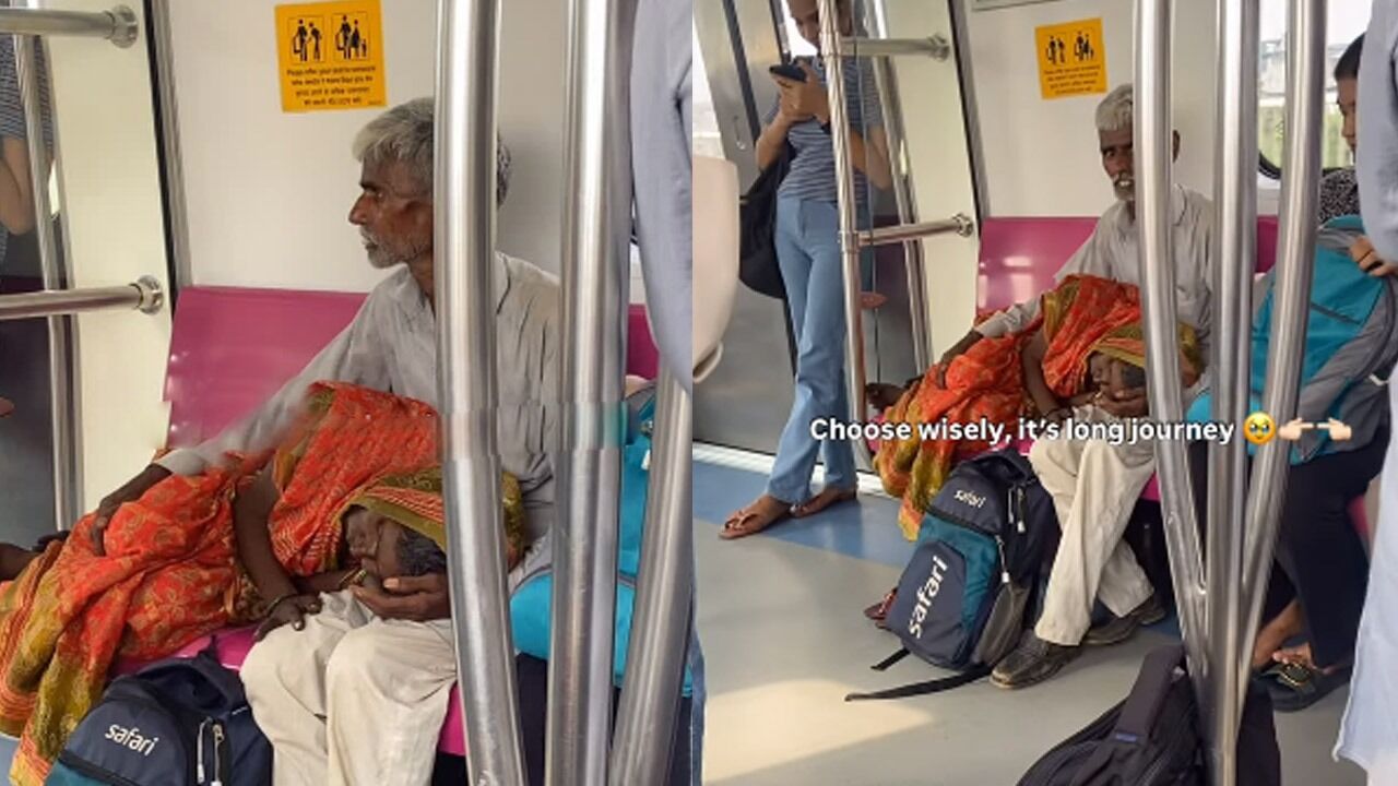 Delhi Metro Viral Video: दिल्ली मेट्रो से एक वीडियो काफी वायरल हो रहा है। इस वीडियो में एक बेहद साधारण बुजुर्ग पति-पत्नी दिखाई दे रहे हैं। पत्नी अपने पति की गोद में सिर रखकर सो रही है और पति बेहद शालीनता से उसे संभाल रहे हैं।
