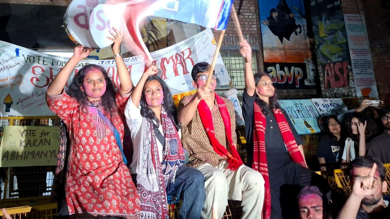 जेएनयू छात्र संघ चुनाव के विजेता उम्मीदवार।