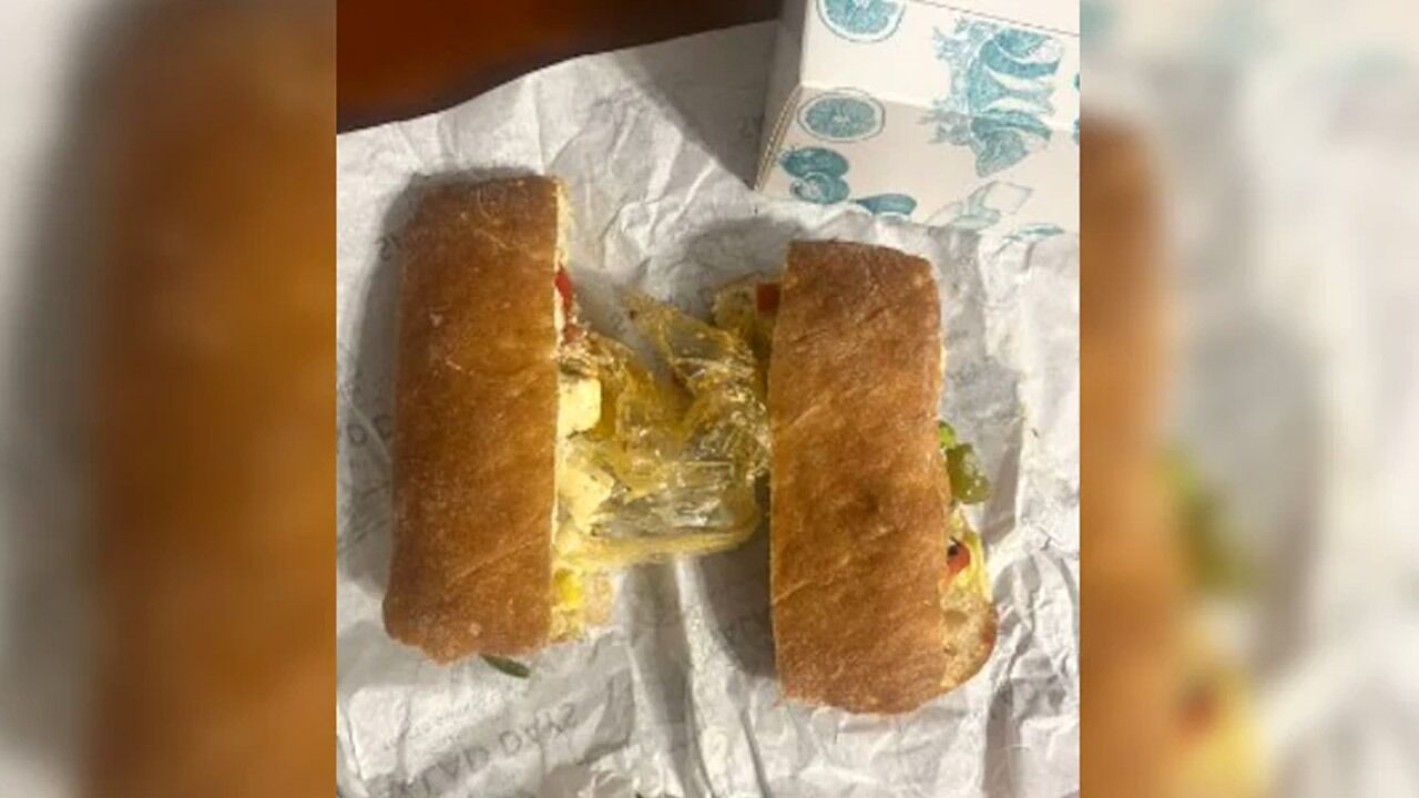 सैंडविच में मिला प्लास्टिक ग्लव।