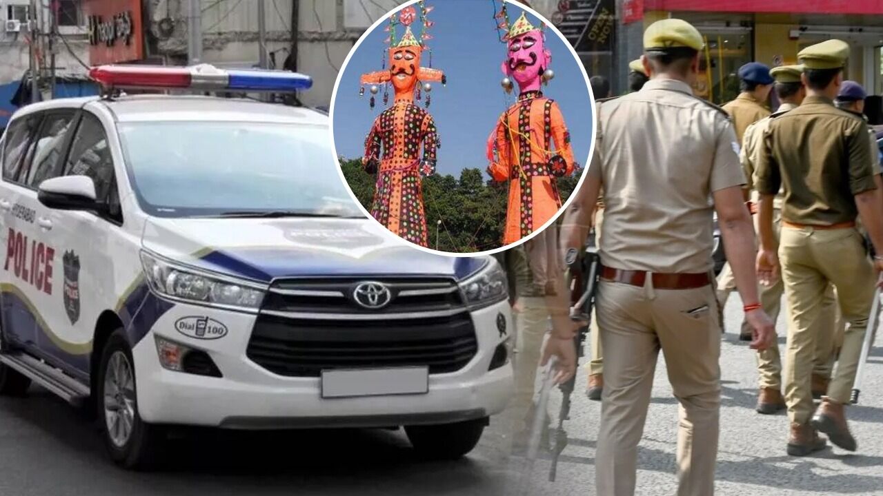 नोएडा में दशहरे पर पुलिस की सुरक्षा।