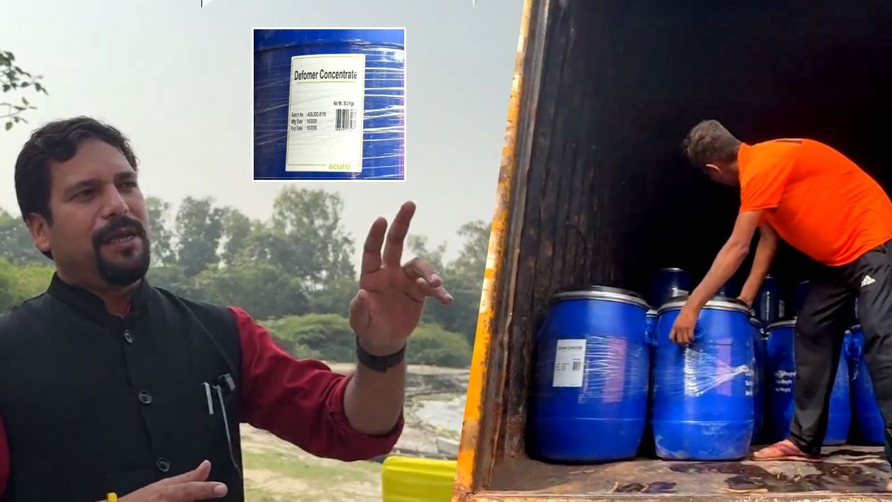 इससे पहले बुराड़ी से आम आदमी पार्टी के विधायक संजीव झा ने भी यमुना में रसायन मिलाए जाने को लेकर बीजेपी सरकार पर सवाल खड़े किए थे। संजीव झा ने अपने सोशल मीडिया प्लेटफॉर्म एक्स अकाउंट पर यमुना में भारी मात्रा में Defoamer Concentrate नाम का केमिकल मिलाए जाने का एक वीडियो शेयर किया। वीडियो में एक कंटेनर के अंदर छोटे-छोटे नीले ड्रम रखे होते हैं, जो मजदूरों द्वारा उतारते दिखाया गया है।