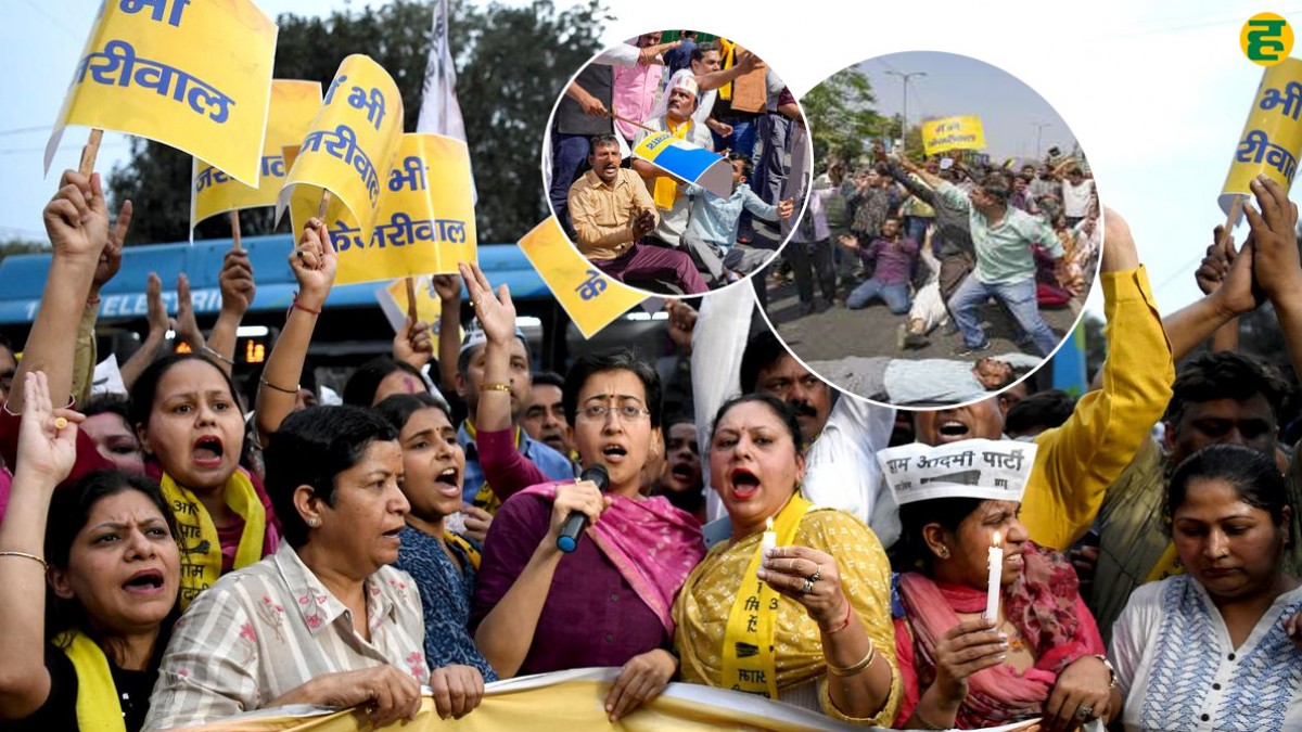 आप के कई प्रदर्शनकारियों को पुलिस ने हिरासत में लिया