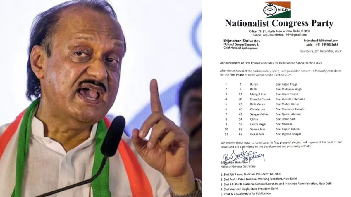 दिल्ली विधानसभा चुनाव 2025 के लिए अजित पवार की नेशनलिस्ट कांग्रेस पार्टी (NCP) ने अपनी पहली सूची जारी कर दी है। इस सूची में कुल 11 उम्मीदवारों के नाम शामिल हैं।
