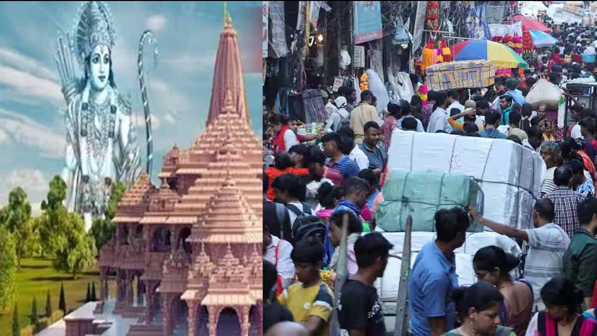 Delhi: अयोध्या में आगामी 22 जनवरी, 2024 को भगवान श्रीराम की मूर्ति की प्राण प्रतिष्ठा के चलते बाजारों में रौनक है। ऐसे में देश भर में एक लाख करोड़ का कारोबार होने की संभावना है।