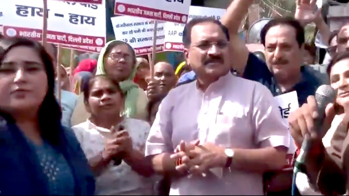 दिल्ली जल संकट: पानी किल्लत पर बीजेपी का विरोध प्रदर्शन, सचदेवा बोले- AAP विधायक कर रहे कालाबाजारी
