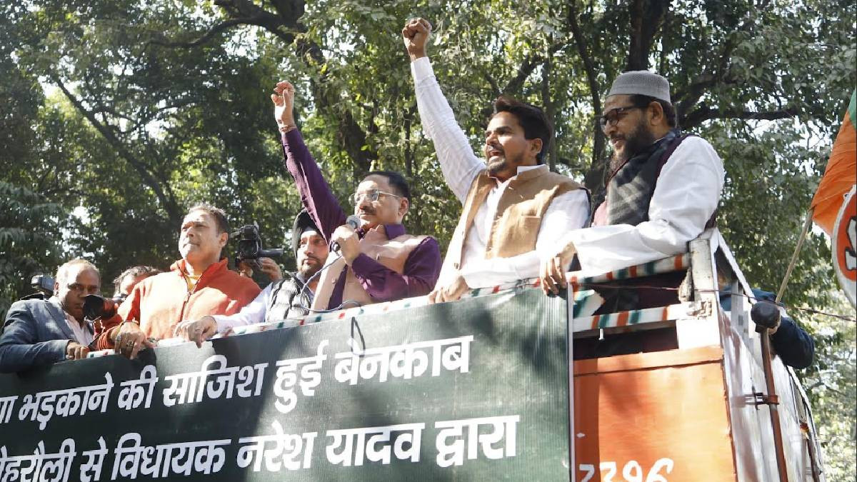 मीडिया रिपोर्ट्स के मुताबिक, आप विधायक नरेश यादव द्वारा कुरान की बेअदबी के बाद इंडिया गठबंधन सहित अरविंद केजरीवाल की चुप्पी साधने के खिलाफ फिरोजशाह रोड स्थित केजरीवाल के आवास के बाहर यह जोरदार विरोध प्रदर्शन किया है। इस प्रदर्शन में वीरेंद्र सचदेवा के अलावा नेता विपक्ष विजेन्द्र गुप्ता भाजपा नेता सरदार अरविंदर सिंह लवली, वरिष्ठ नेता आतिफ रशीद, एवं अल्पसंख्यक मोर्चा अध्यक्ष अनिस अब्बासी ने संबोधित किया। वहीं, विजेंद्र गुप्ता ने कहा कि जो लोग ख़ुद को मुस्लिमों के रहनुमा बताते हैं वे सिर्फ हिंदू-मुस्लिम को एक वोट बैंक की तरह देखते हैं।