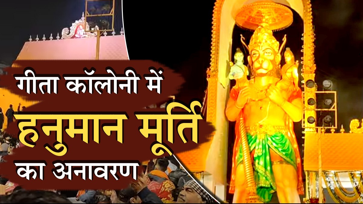 Ram Mandir Pran Pratishtha: दिल्ली की गीता कॉलोनी में भगवान हनुमान की 51 फीट ऊंची मूर्ति का अनावरण किया गया। इस दौरान बीजेपी के नेता मौजूद रहे।