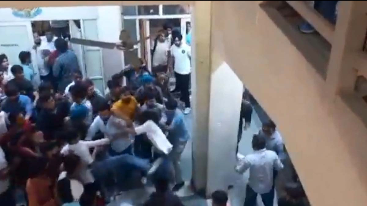 Delhi University Khalsa College: दिल्ली विश्वविद्यालय के श्री गुरु तेग बहादुर खालसा कॉलेज में छात्रों के दो गुटों के बीच झड़प का मामला सामने आया है। घटना रविवार की बताई जा रहा है। जिसका वीडियो भी सामने आया है। वीडियो में देखा जा सकता है कि प्रिंसिपल कार्यालय के बाहर दो छात्र समूहों के बीच झड़प हो रही है, जिसके चलते एक छात्र की पगड़ी भी गिर गई।
