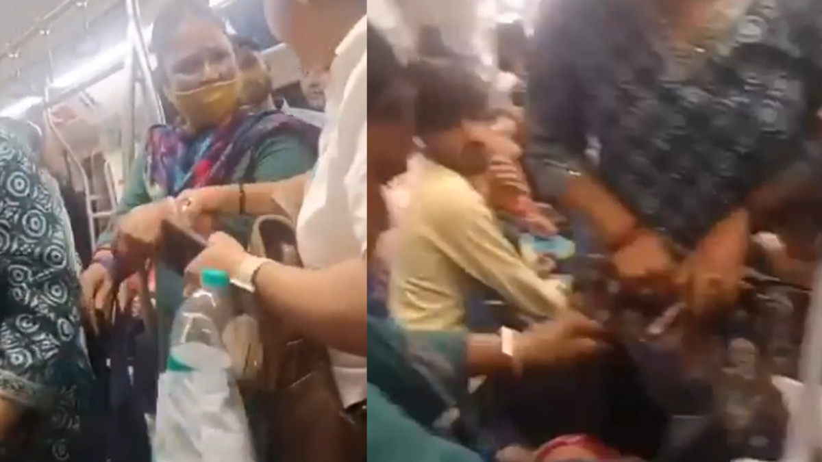 Kalesh b/w these Ladiez inside Delhi metro over the doubt of stealing money pic.twitter.com/Se3FeHufQe