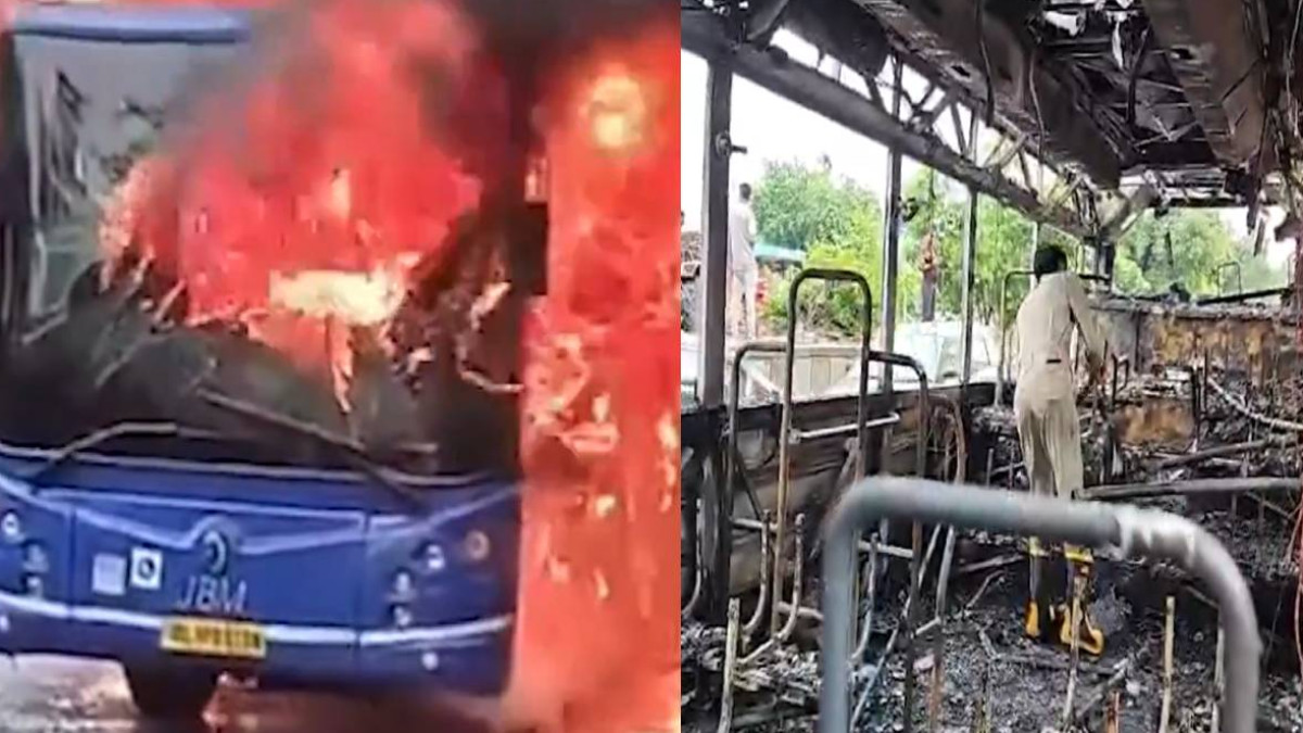 डीटीसी बस में लगी भीषण आग: घटना के दौरान सवार थे 50 यात्री, बाइक सवार की सूझबूझ ने हादसे को टाला