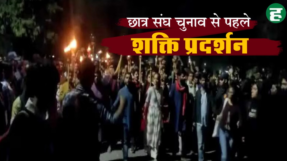 चुनाव में ज्यादा समय नहीं रह गया है, इसलिए दोनों संगठनों ने मंगलवार रात शक्ति प्रदर्शन किया। दोनों हीं संगठनों ने विशाल मशाल जुलूस निकाला। एबीवीपी ने जहां गंगा ढाबे से निकलकर कई हॉस्टलों से होते हुए चंद्रभागा हॉस्टल तक जुलूस निकाला। वहीं लेफ्ट संगठनों का मशाल जुलूस चंद्रभागा हॉस्टल से निकलकर गंगा ढाबे तक गया। इस दौरान दोनों हीं संगठनों के छात्रों ने जमकर नारेबाजी की। साबरमती ढाबे के पास दोनों हीं संगठनों का मशाल जुलूस आमने सामने होने वाला था, लेकिन इलेक्शन कमीशन के वालंटियर और JNU सिक्योरिटी के जवानों ने ह्यूमन चेन बनाकर दोनों संगठनों को आमने-सामने होने से रोका।