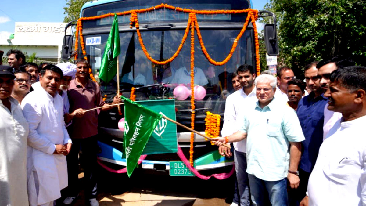 दिल्ली सरकार में परिवहन मंत्री कैलाश गहलोत ने हरियाणा के गुभाना गांव के लिए 848 नंबर के विस्तारित रूट पर डीटीसी की बस को हरी झंडी दिखाई।