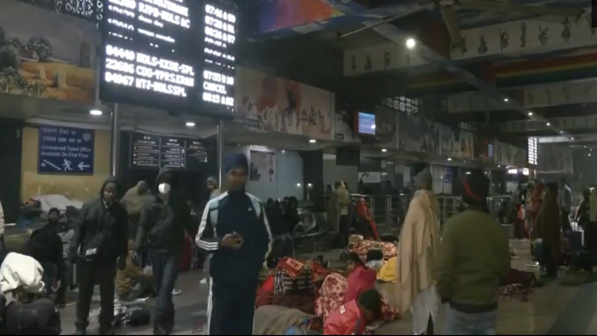 #WATCH | Delhi: Passengers at New Delhi Railway Station face difficulties as some trains are running off-schedule due to bad weather.